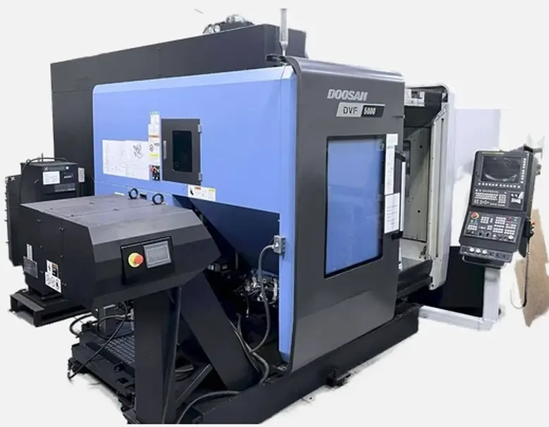 DOOSAN DVF 5000 — это 5-осевой обрабатывающий центр для комплексного изготовления сложных деталей за одну установку. Станок с нагрузкой 400 кг и шпинделем 12 000 об/мин обеспечивает высокую точность обработки для аэрокосмической и автомобильной отраслей. Его ключевые преимущества — высокая производительность, надежная конструкция и возможность автоматизации для безлюдной работы.