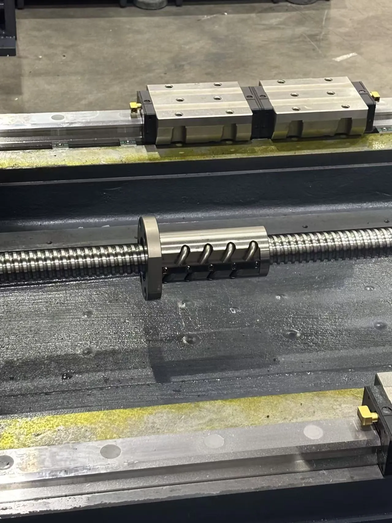 Привод X-axis по схеме «двойной гайки с пред натягом»: Благодаря поддержке винта в трех точках, достигается высочайшая точность позиционирования и устойчивость к вибрациям при большой нагрузке.
